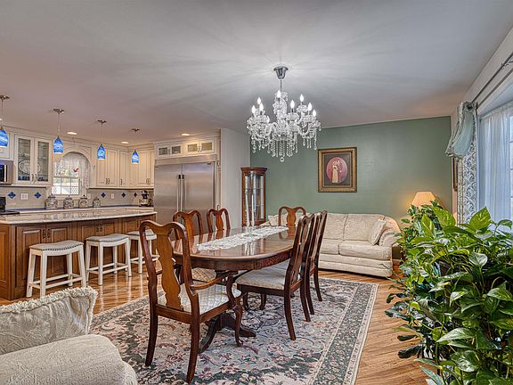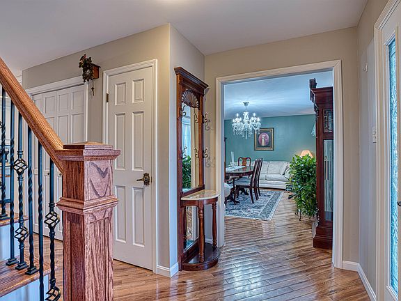 This beautifully updated two-story, 4-bedroom home offers 2,713 sqft of thoughtfully designed and updated living space. As you arrive, the meticulously maintained landscaping and the elegant stamped concrete driveway and walkway create an inviting first impression. Inside, modern elegance meets everyday convenience. The first floor underwent a remodel in 2020, expanding the kitchen to include quartz countertops, a ceramic tile backsplash, LED under-cabinet lighting, and a massive island with abundant storage and pull-out drawers. The open-concept family room is centered around a charming wood-burning fireplace, while new LVT flooring and fresh paint elevate the entire first floor. A half-bath with a laundry area rounds out the main level. Upstairs, all four bedrooms have been repainted and boast professionally cleaned carpets. The owner suite, remodeled in 2021, exudes luxury with new carpeting, an updated walk-in closet, and a spa-like bathroom featuring a large tiled shower, ceramic flooring, and an in-wall space heater. The second-floor bathroom is equally impressive, offering a jetted tub, ceramic tile finishes, and another built-in space heater. The pull-down attic provides convenient access to additional storage space. A spacious bonus room sits above the attached garage and is complete with a pool table and treadmill, perfect for recreation or a private retreat. The outdoor oasis offers a sprawling covered porch with ceiling fans, pull-down shades, a stone fireplace, and a fully equipped outdoor kitchen—including a gas grill, under-counter refrigerator, and metal cabinetry. A bar area with stools, along with included patio and deck furniture, makes this space ideal for gatherings. Overlooking the pool area, the 18 x 36-foot in-ground saltwater pool boasts an adult-rated turbo slide, diving board, and retractable cover, with wiring in place for optional heating. Other amenities include a freshly painted attached 2 car garage with 2 workbenches and storage closet, a turfstone driveway leading to the outbuilding which features two overhead doors and a walk-in entrance making it the perfect workshop or storage space and a small outbuilding for lawn storage. With its perfect blend of modern updates and exceptional outdoor living space, this stunning home is more than just a residence—it’s a lifestyle.