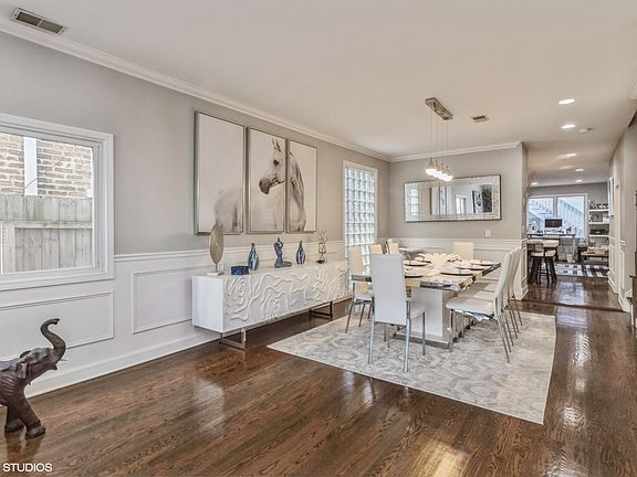 This stunning home, ideally situated between Portage Park and Irving Park, feels like new. Offering four spacious bedrooms and three full bathrooms, it boasts hardwood floors throughout, soaring 10-foot ceilings, and luxurious finishes. The beautifully updated kitchen features stainless steel appliances, a gourmet 36" stove with a matching hood, a large island with a built-in microwave, granite countertops, and a wet bar. Upstairs, you'll find generously sized bedrooms, a convenient laundry room, and an incredible master suite complete with three closets, a cozy fireplace, and a spa-like master bath with a double granite vanity, whirlpool tub, and separate shower. The rooftop deck provides the perfect space for outdoor entertaining. Conveniently located near expressways, the Metra, Six Corners shopping, dining, and retail.