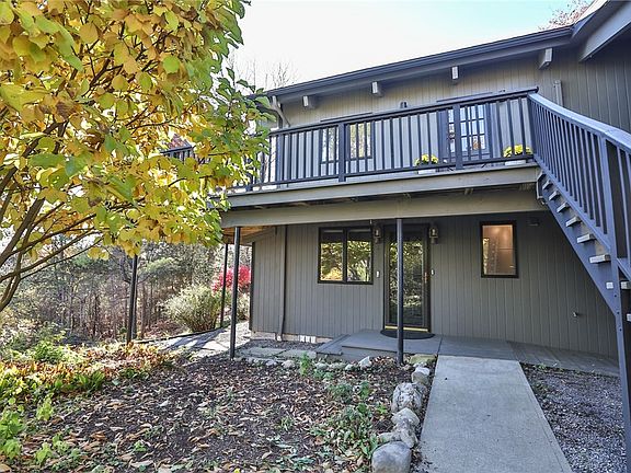 Enjoy sweeping lake views from this 4 bedroom home overlooking Canandaigua Lake! Nestled on a private treed one acre lot. Located only 5 minutes South of the City of Canandaigua. The walk out terrace level has 3 bedrooms, 1 full bath, family room with beamed ceiling & a gas freestanding stove. A sliding glass door opens onto a patio area, treed yard facing the lake. The upper level features a great room with beamed cathedral ceiling, gas fireplace & sliding doors to the expansive wrap around deck with Lake Views. New flooring in entire home. New kitchen with solid surface counters & All new appliances. Large breakfast bar wide open to great room with new half bath. Private main floor owners suite with with private deck, new vanity with double sinks & new custom shower with dual shower heads. Also has a 2 car garage, new roof, hot water heater & is freshly painted inside. Public water & natural gas. This home would be a great private home or a prime Air B&B property.
