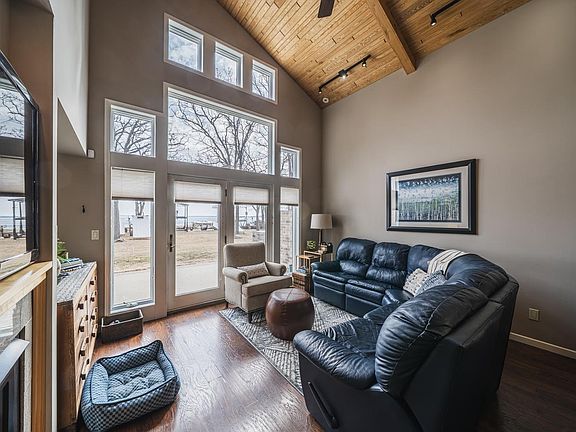 CONDO ON BIG PINE LAKE. Highly sought after location and easy carefree living in Marin Bay Condo Association. Southern exposure from wall of windows that frame the picturesque sandy shores of Big Pine Lake, allowing loads of natural light into this spacious 2 bedroom (PLUS a den), 3 bath home. Main floor living, gas fireplace, vaulted T&G ceilings, upper family room along w second bedroom, den and bathroom for guests. Attached 2 stall garage, generous amount of storage and an additional shed on premise for all the lake life extras. This bright and upgraded residence is perfect for those seeking a comfortable and maintenance-free lifestyle amidst beautiful natural surroundings. Level lot walks out to sugar sand beach. Dock/boat slip included.