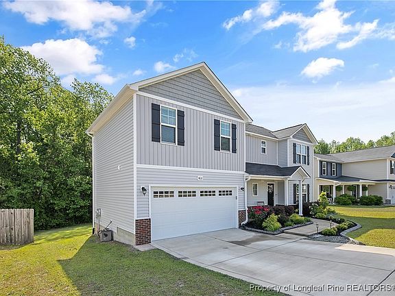 Welcome home to this spacious 3 bedroom, 2.5 bath property offering comfort, style, and convenience. The open floor plan features a bright family room, a dining area, and a gorgeous kitchen with granite countertops, stainless steel appliances, a large pantry, and an island perfect for casual dining or entertaining. Upstairs, you'll find all bedrooms plus a large loft ideal for a home office, playroom, or second living space. The primary suite includes dual vanities and a generous walk-in closet. The laundry room (with front-load washer and dryer included) and a large hall bath complete the upper level. Enjoy the outdoors with a screened-in porch, extended patio area with pergola, and a private wooded backdrop offering a peaceful retreat. This home combines modern finishes with a functional layout ready for you to move in and enjoy! Quick commute to Fort Bragg, shopping and dining!