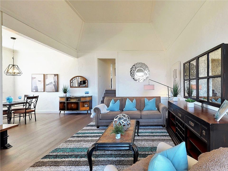 Turnkey, end-until with huge private patio entrance perfect for entertaining, located in the prized Villa Vallarta resort community, directly across from Alla Park and The Framers Market. This 2BD/2BA split level "A" plan features an expanded living room with fireplace, soaring ceilings that create a bright spacious atmosphere with an easy open floor plan. Newly installed wide plank hardwood floors throughout. Kitchen features stainless steel appliances, granite countertops and window over sink that over looks patio. The Master Bedroom does not share any common walls, and is en-suite with separate shower and bath, finished in stone with new fixtures. An over-sized 2-car-garage for direct and easy access with plenty of built-in storage. The secure gate complex offers four pools, spas and a racquetball court. Convenient access to Venice, Playa Vista, Del Rey Arts District and all things Silicon Beach.
