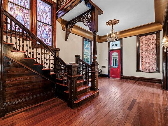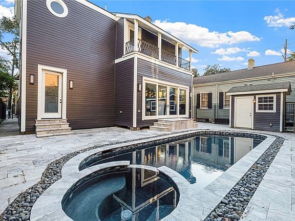 Stunning quintessential New Orleans Uptown property just 1 block off of St Charles, walking distance to the parade route but not in the Mardi Gras box. This amazing property has a new porch, front balcony and exterior paint. Inside boast original hardwoods, fireplaces in almost every room and stained glass windows. Dramatic foyer with handsome staircase, crown molding, chandeliers, soaring high ceilings and designer lighting through out. Double parlors, open concept entertaining area that include the den and dining area with a wall of windows over looking the in ground pool and spa with an exterior full tile bathroom. Huge kitchen with multiple ranges, custom cabinetry, stone counter tops, 2 sinks and huge pantry. Upstairs includes a beautiful library/ loft overlooking the foyer. The primary suite has an enormous closet with a center island, chandelier and custom shelving as well as a spa like designer bath and a private balcony overlooking Prytania. The 2 additional bedrooms both have modern on suite bathrooms and one has an additional sitting area. Upstairs laundry room and back balcony over looking the pool. Off street parking for 3-4 cars, low assumable flood insurance and near restaurants, shops and public transit.