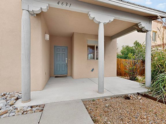 Nestled in the vibrant Tierra Contenta neighborhood w/convenient access to HWY 599 and Cerrillos Rd perfect for commuters! (Los Alamos 45 mins)(Alb 50 mins) This vibrant area offers tree lined sidewalks and trails along Jaguar Drive, nearby schools and a public library. Home has exceptional curb appeal and features Fresh paint, Bamboo floors, updated primary bath featuring walk-in pebble shower, New vanity and Sink. Kiva fireplace and vega beams in living room make for authentic northern New Mexico feel and cozy nights. New TPO Roof! Lucious mature landscaping and covered patio for a ture backyard oasis.