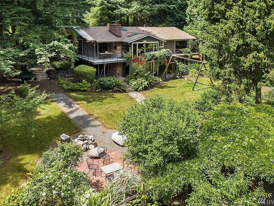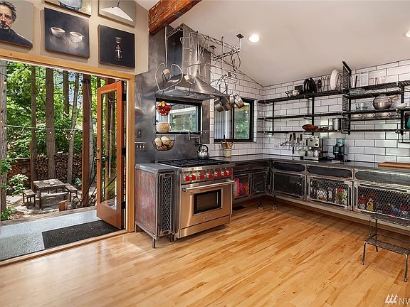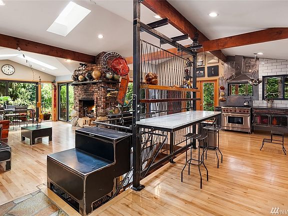 Updated daylight rambler with artistic, contemporary flair! The ultimate great room with 3 sets of doors leading to the entertainment deck. Master with private deck. Cool custom handcrafted finishes. Maple & bamboo floors throughout. Vaulted ceilings with exposed beams & skylights. Remarkable outdoor living with expansive lawns, outdoor kitchen, covered deck & patios. Park-like shy acre with stable & pasture. Trails End, a welcoming community with pool, club house, tennis court & riding arena.