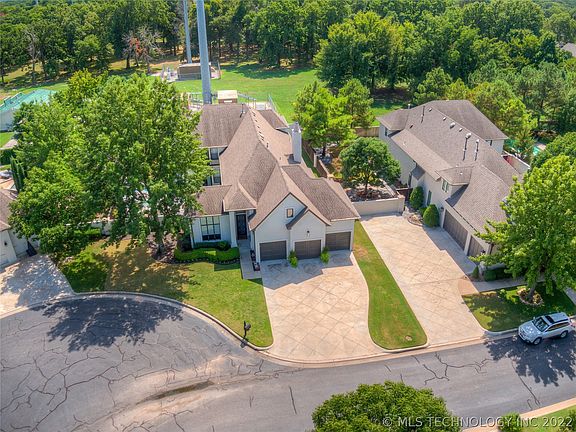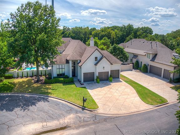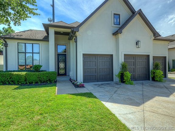 Elegant Luxury Custom home with pool and large patio in gated Stonebriar, Jenks SE. Gorgeous open floor plan with high beamed ceilings featuring travertine tile throughout. Open dining & large granite kitchen, huge center island, custom cabinets. Office w/hand scraped wood floors & French doors. Half bath down. Master Ensuite w/French doors to patio and pool, luxurious, spa-style bath. Game/Theater w/wet bar & half bath. 3 beds up, new wood floors, 1 w/private bath. New paint in/out, carpet. Outdoor kitchen. A MUST-SEE!