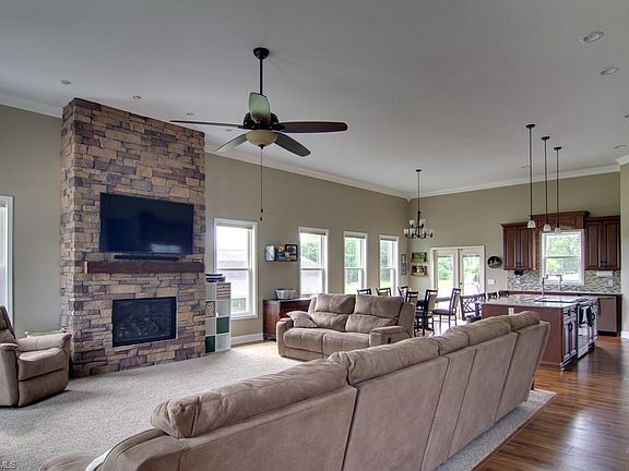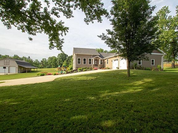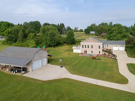 This has something for everyone! Top notch quality construction throughout including footers resting on bedrock & silent floor trusses. Open floor plan with 12' ceilings in the great room, kitchen & dining area. Loads of natural lighting and great views out of the abundance of windows. Great room with stacked stone fireplace that has a reclaimed barn beam mantle, permanent gas logs. Kitchen with all quartz counters, large island with cooktop and pot filler. Built-in beverage fridge and double oven. Master bedroom with fireplace, reclaimed wood barn door for the ensuite bathroom. Master bath has a jetted tub and separate shower with 2 shower heads and cobblestone flooring, Quartz counters. Other 3 bedrooms are equally large and roomy, all with ceiling fans. * High-efficiency furnace & a/c installed fall of 2017. * attached Garage heated with natural gas, Garage doors are insulated & 8' high * Highly rated Highland schools * Deck new in 2019 * New septic in 2016 * Outbuilding 48'x30' built with ¾" plywood; the main floor fully insulated with 11' ceiling. 100amp electrical service. Outbuilding has a Natural gas furnace. & Running Water. Outbuilding has Full second floor. Garage doors on outbuilding are 10' high, double door is 16' wide, single door is 9' wide * Concrete stamped patio 30' x 20' from the walk-out basement. * 2.9 acres!