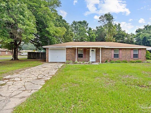 Welcome to 4632 Old Guernsey Rd in Pace, a well-maintained 3 bedroom, 2 bathroom home offering approximately 1,200 square feet of living space. Inside, you'll find durable wood-look tile flooring in the living room, tile in the kitchen and bathrooms, and carpeted bedrooms for added comfort. The one-car garage has been thoughtfully converted—half serves as storage and the other half is a heated and cooled flex space, perfect for a home office, gym, or hobby room. Each bedroom and the living room feature ceiling fans, while both bathrooms have been updated with new lighting and modern vanities. The HVAC system is approximately 2 years old, and with an acceptable offer, the seller will install a brand new roof prior to closing. This property is an excellent opportunity for first-time buyers or investors looking for a move-in-ready home in a convenient Pace location.