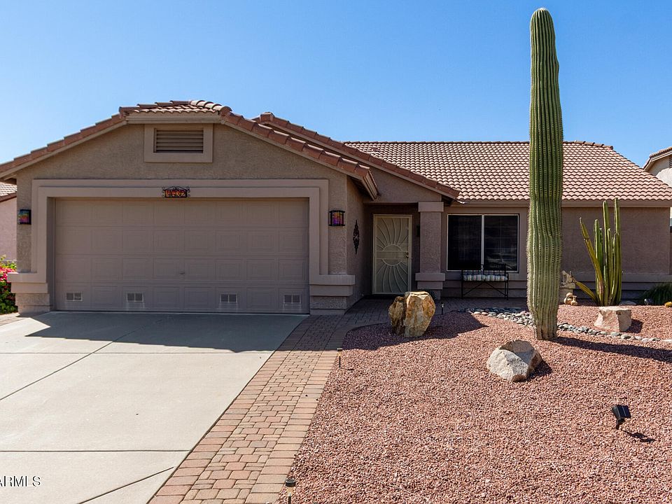 New roof 2023! This gorgeous 3 bedroom 2 bath home at Equestrian Trail in Gold Canyon is in a fantastic location. Close to restaurants, shopping, schools, parks, multiple golf courses to choose from & stunning mountain views of the Superstition Mountains. You'll love the layout of this home. Your kitchen offers stainless steel appliances ( induction stove & high end microwave), granite counter tops, full height mosaic tiled backsplashes, a pantry & filtered water to utilize. Your spacious master suite offers a plethora of natural light from your Bay Windows, a walk in closet, dual vanity, a walk in shower & soaking tub to relax in. This stunning home also offers upgraded ceiling fans & lighting, a newer roof (2023) / (2024 - patio), vaulted ceilings, tile flooring throughout (no carpet), a two car garage that offers epoxy flooring, cabinets for extra storage & organization, a new hot water tank (2025), a water softener that was installed in 2024, as well as a front security door for your privacy. Your backyard offers a covered patio with a ceiling fan, a pull down patio shade, extended pavers, artificial grass, along with a sparkling heated pool with solar cover. New pool pump & filter (2025). This gem in the desert is a Great Buy & a Must See!!!