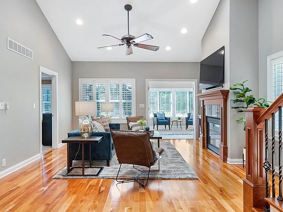 Experience Luxury Living! This high-end condominium is your perfect retreat, designed with top-tier features throughout. Step into the grand living room, where soaring vaulted ceilings and a magnificent gas fireplace create an impressive first impression. The stunning hardwood floors shine under the abundant natural light streaming in through skylights, making this space feel open and welcoming. The chef's kitchen is a masterpiece, boasting exquisite granite countertops and a spacious center island with a breakfast bar, ideal for morning coffee or casual dining. The custom Omega cabinetry offers ample storage, perfectly blending style and functionality. Retreat to the main floor master suite, a sanctuary of luxury with elegant tray ceilings and a sizable walk-in closet, complete with custom built-ins for all your organizational needs. The master bath is a spa-like escape with a beautifully tiled shower and in-floor heat. Appreciate the convenience of main floor laundry room and a half bath for guests. Unwind each morning in the cozy 4-season room sipping your coffee and basking in the warmth of in-floor heat as you gaze out over the expansive, maintenance-free deck and landscaping. Ascend the wide staircase to discover a charming loft with a built-in library and cozy seating area, overlooking the grand main floor. The second floor hosts a spacious bedroom with a walk-in closet and a luxurious full bath, featuring a tiled soaking tub, double sinks, and in-floor heating. An executive home office, accessed through stunning French doors, offers a sophisticated space for work, complete with a custom desk, granite desktop, and rich cherry built-ins. The lower level provides a spacious family room, a large bedroom, and another beautifully appointed bathroom. The attached two-stall heated garage is a haven for hobbyists, featuring a floor drain, sink, and custom workshop. Outside, the new deck invites you to relax and enjoy serene evenings, whether you’re sipping a cocktail or diving into a good book. With the HOA handling all outdoor maintenance, you can spend your time enjoying the beauty of this exceptional home. This condo offers a perfect blend of luxury, comfort, and convenience. Call today to schedule your private showing and make this dream home yours!