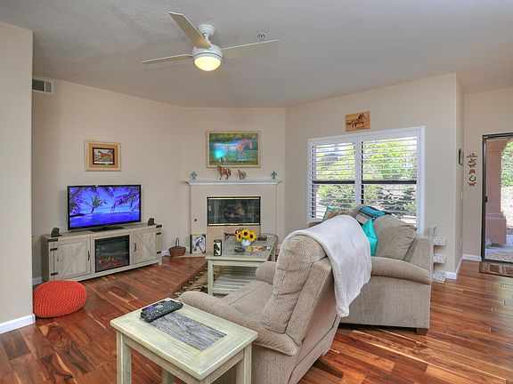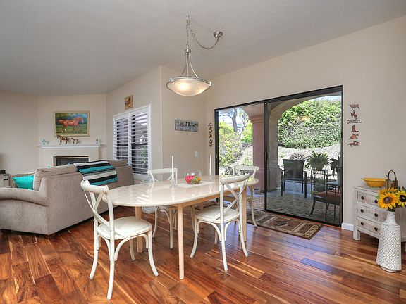 Discover this stunning and spacious 3-bedroom, 3-bathroom condo in the highly sought-after Forte Ranch community of Santa Barbara. This impeccably maintained single-level home boasts beautiful laminate floors, a tiled kitchen and bathrooms, a cozy fireplace, and ceiling fans for added comfort. Enjoy the elegance of plantation shutters and the tranquility of a private outdoor patio with serene views of lush greenery, palm, and olive trees. The condo includes an attached two-car garage and an additional storage area for your convenience. The complex offers resort-style amenities, including a luxurious pool area and spa, perfect for relaxation.