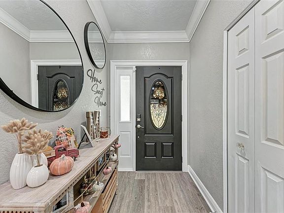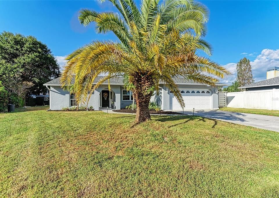 Charming 3-Bedroom Home on Quiet Cul-de-Sac ~ No HOA! ~Welcome to this beautifully updated three-bedroom, two-bathroom home nestled on a peaceful cul-de-sac with no HOA fees and AMAZING curb appeal!!. This inviting residence offers modern comforts and thoughtful upgrades throughout, Including IMPACT WINDOWS, making it move-in ready. Step inside to find luxury vinyl plank flooring flowing through the main living areas, while the cozy bedrooms feature plush carpeting. The recently renovated kitchen and bathrooms add a contemporary touch, with the standout eat-in kitchen showcasing a large island with stunning quartz countertops—perfect for cooking, entertaining, or casual dining. The open-concept floor plan enhances the sense of space and flow throughout the home. The spacious master suite features a generous walk-in closet, offering ample storage. Additional upgrades include a newer garage door opener and epoxy-coated garage flooring for added convenience and style, 2 year old AC and 2 year old ROOF. Enjoy Florida living in the private backyard with a covered lanai, ideal for relaxing or entertaining outdoors. Also included is a handy storage shed. Centrally located just minutes from shopping destinations like Walmart and Publix, Detweillers and a short drive to some of the world’s most beautiful beaches, this home offers the perfect blend of comfort, style, and location