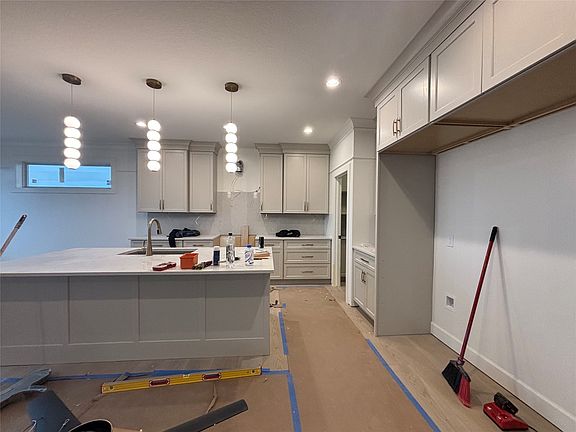 Welcome home to this 3-Bedroom Up Amber ranch plan by KRM, where craftsmanship meets elegance. Perfectly situated in the highly desirable Biltmore West community featuring a serene backdrop of a pond. Inside, the home offers an impressive 1,902SF on the main level with 1,243SF finished living space below. The great room captivates with a dramatic stone fireplace stretching to the vaulted ceiling, while expansive fixed windows bathe the interior in natural light. The chef’s kitchen is a true showpiece, featuring quartz countertops, custom cabinetry with crown molding, a generous walk-in pantry with trim-built shelving, and premium appliances. Retreat to the primary suite, where a tray ceiling adds detail. The spa-like bath boasts a tiled shower and leads into a spacious walk-in closet that connects seamlessly to the laundry room and drop zone, complete with built-in lockers. The split-bedroom design offers privacy, with a half bath and two additional bedrooms sharing a stylish Jack-and-Jill bath on the other end of the home. The finished walkout lower level expands your living, offering two bedrooms, bathroom, bar, & a large family room for entertaining. Additional highlights include: rounded drywall corners, soft-close cabinetry, a 14’x14’ covered deck, & a wealth of builder-exclusive features such as the BIBS insulation system, Form-a-Drain, Advantek subflooring, & the Zip system exterior. This home is more than a place to live—it’s a statement of quality and refined design.