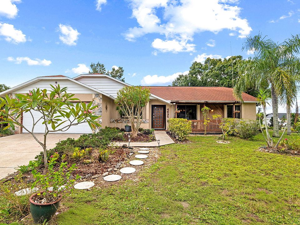 Welcome to this beautifully maintained residence, perfectly positioned on a generous .27-acre corner lot with an impressive collection of mature landscaping offering shade, privacy, and timeless curb appeal. A large, welcoming front porch sets the tone -- the perfect place to enjoy your morning coffee or unwind at the end of the day.Step into the backyard and you'll find a spacious screened rear porch, ideal for entertaining, outdoor dining, or simply enjoying the serene treed setting. Designed for those who value both comfort and outdoor living, this property provides peace, privacy, and space to relax.Inside, nearly 2,000 sq. ft. of living space is filled with natural light from vaulted ceilings and skylights, creating an airy, open feel. The floor plan features a designated formal dining room, decorative fire place and a well-appointed kitchen with stainless steel appliances, quality cabinetry, and soft-touch drawers a seamless blend of function and style.