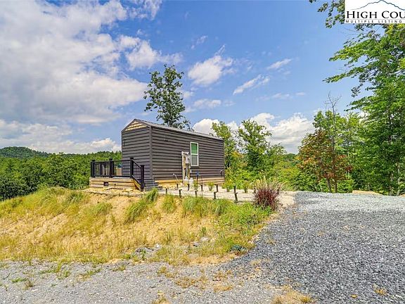 This thoughtfully designed 650-sq-ft mountain tiny home is already in place and currently rented as a successful Airbnb, offering immediate income potential. Inside, the open layout includes a queen bed, queen sleeper sofa, full bath, and a well-equipped kitchenette with a 2-burner stovetop and refrigerator. Modern comforts include a mini-split system, tankless water heater, and keyless entry. Turnkey- sold fully furnished!