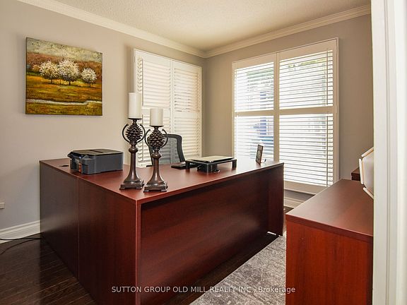 Beautiful must see luxurious and professionally decorated Executive Town-Home in prime location. High-end renovations were featured in Our Homes Magazine. One of only five units in highly sought after, and upscale complex with centre hall construction and stand alone driveway. Extensive landscaping and new fencing offers maturity and privacy in large sized backyard with direct gas line for barbecue. This property boasts California shutters throughout, a modern kitchen featuring stainless steel/gas appliances, hardwood flooring, marble backsplash, and a separate beverage fridge, all complemented by pot lights and under counter lighting. The designed dining and living areas are in an open-concept layout with gas fireplace accentuated by windows that flood the space with natural light. Main floor also includes bright home office as well as powder room which features beautiful lighting and high end finishes. The primary bedroom offers an expansive walk-in closet, a beautifully appointed 3-pc ensuite, with marble heated floors The second and third bedrooms are spacious and bright, ensuring comfort and versatility. Additionally, the sitting room, bathed in natural light, serves as an ideal fourth bedroom or additional home office. The second 3-pc bathroom, is fully customized with modern finishes, including pot lights, marble countertop, and heated marble floor. Fully finished basement includes large storage room, workout space, and additional rec/living room. This prestigious complex offers amenities designed to cater to a luxurious lifestyle. Enjoy the convenience of an outdoor pool, as well as weekly lawn maintenance and snow removal. Don't miss the opportunity to own this stunning, move-in-ready unit that epitomizes luxury and convenience in a prime location. Walking distance to parks, schools, Square One Shopping Center, restaurants, Sheridan College & more, plus easy transit & highway access + soon to be built Hurontario LRT.