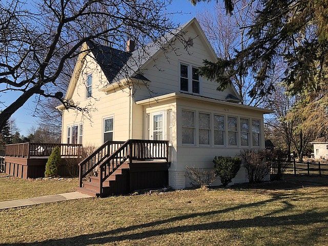 Just over an acre with a little piece of history. Updated and beautifully maintained. Has both Vintage and modern elements with its original wide moldings and hardwood floors while the kitchen and baths are updated. Nice fenced in yard with fruit trees and deck and fire pit. Exterior of home and garage painted within the last year. Inside has been painted as well in neutral tones throughout. Wide sunroom off the back. Large closets in all the bedrooms. Newer roof and sump pump. Vinyl windows.