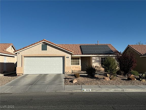 This charming single-story home in North Las Vegas has everything you need for comfortable living and more. With 3 spacious bedrooms, a versatile den, perfect as a home office or hobby space, and 2 full bathrooms, and a large great room. Don't miss the pool-sized rear yard with a covered patio. One of this home’s most desirable aspects is its owned solar unit with power bills average just $25 a month, so you can enjoy major savings while living more sustainably.