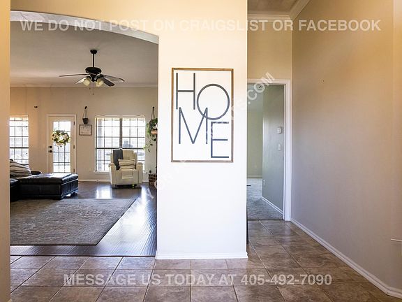 This great home sits in Deer Creek School District on a beautiful corner lot in a quiet gated community. The home is in walking distance to the elementary school. The large corner lot sits adjacent to the neighborhood playground. The home has a 2 car garage and an 8 person storm shelter. The back yard boasts an extended patio. Located near a private fishing creek just for the neighborhood. The floor plan is a true 4 bed 2 bath or can easily be an office or den, the home also has a spacious dining area.