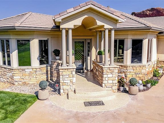 The original owner designed the home so that all of the main rooms, kitchen, great room, primary suite and family room, all face the remarkable ancient red rock formations! The great room features a soaring celling, wall of windows, gas log fireplace, and door out to the 566 square foot composite deck overlooking the pool. In the eat in kitchen there is ample counterspace, cabinetry and a walk in corner pantry. You pass through a butlers pantry on your way into the formal dining room, that has a step ceiling and is large enough to accommodate many guests. The built-ins in the study completely eliminate the need for furniture, including book shelves, desk, large storage drawers, and a corner bench. The guest bath has a unique glass decorative wall. In the spacious primary suite has room for a large bedroom set, seating area, and has a gas log fireplace to keep it cozy. The 5-piece primary bathroom has a distorted glass shower enclosure, separated sinks, and a private commode room. The walk in closets are conveniently connected to the main floor laundry room. On the walk out level there is a large family/recreation room with a gas log fireplace, window seats, and a door out to the large stamped concrete patio beside the pool. with 3 more bedrooms, 2 more baths, including a Jack-n-Jill, second laundry room, a utility/storage room, and a second large storage room with shelving, what else could you possibly need? The large pool has an automatic cover, pool equipment room, and a wall all the way around it, for amazing privacy!