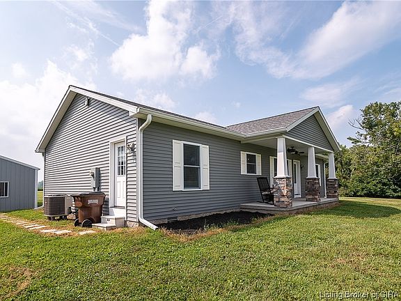 Only 2 years old! Nestled in picturesque Lexington, Indiana, this charming 3-bedroom, 2-bathroom home offers a comfortable and inviting living space. The open-concept kitchen with soft close cabinets effortlessly connects to the living area, enhancing the flow of the home. Modern appliances, ample storage, and a convenient layout make the kitchen a functional and practical space for culinary endeavors. The appliances stay as well as all 5 mounted TV's! From the nine foot ceilings to the split bedroom design, or the ceiling fans with remotes this place has it all! The adjacent living area is perfect for relaxation and quality time with loved ones. The bathrooms have been beautifully maintained, featuring a walk-in shower in the master, tall and elongated toilets throughout, and tall double vanity sinks. With an 18-foot above-ground pool, a spacious deck, and a welcoming front porch, outdoor enjoyment is equally enticing. Under deck there is an 8 person metal storm shelter. Embrace the cozy ambiance and explore the potential of this lovely home. Sellers are also willing to negotiate a John Deere Z515 E zero turn riding mower, only 2 years old, and a John Deere D110 Riding Lawn Tractor, only 5 years old, that has a cart trailer! Schedule a showing today!