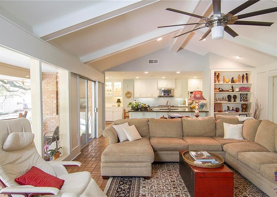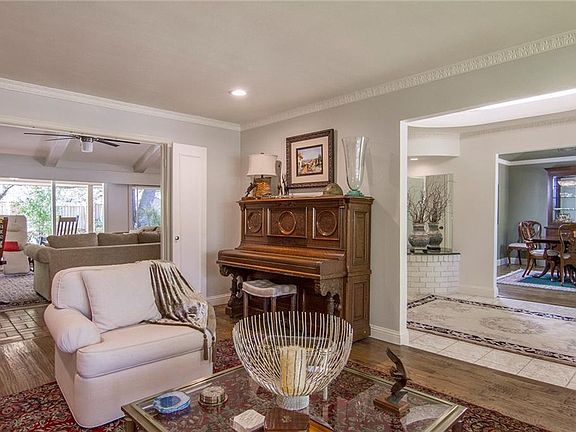 This home has been beautifully updated and meticulously maintained. Split formals welcome you with hardwood floors. A large family room has vaulted and beamed ceiling, built-in shelving; fire place with gas logs, brick flooring and a wall of windows that take in the beauty of this exceptional backyard. Kitchen opens to the living room and breakfast room; recent SS gas cooktop,double ovens and built-in microwave; Bosch dishwasher; huge pantry and updated custom cabinetry. Kitchen opens to the living room and breakfast nook. Split fourth bedroom has hardwoods and built in cabinets, perfect for guests or study. Full bath just off the 4th. All baths updated! Huge patio to enjoy the large trees and manicured yard.