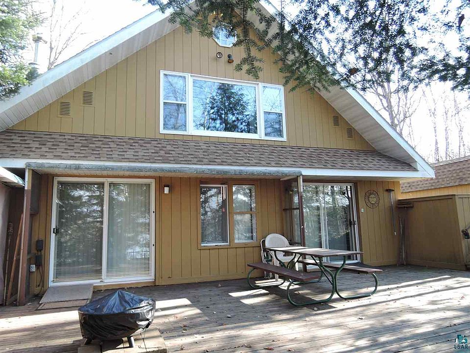 Quiet and tranquil sunsets on Jackson Lake await! This 2 BD, 2 full BA cabin contains 1,516 sq.ft. Main level features an open living/dining/kitchen area with fireplace. Spiral staircase to upper level family room with lovely views of the lake. Outside; medium elevation to water, with dock, sitting area, and 225' of sandy bottom shore. A 2 car detached garage for storage, landscaped yard, and private setting complete this property. Your new cabin has tons of charm with lots of potential!
