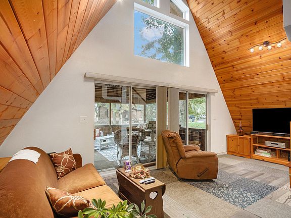 Embrace lake life in this delightful A-frame home with association lake access! Featuring 2 bedrooms, 1.5 baths, and 1,000 sqft of comfortable living space, this home combines rustic charm with modern convenience. Relax on your 3 season patio or in your fenced backyard, watch sunsets over the water, and store your gear in the garage and shed. With beautiful lake views. This one's ready for you to enjoy from day one!