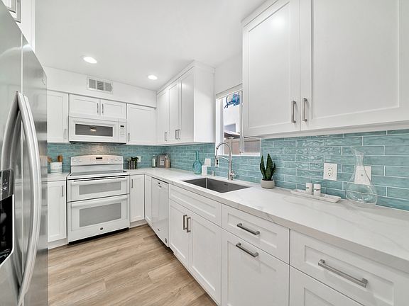 This beautiful and spacious 2 bedroom/2 bath condo is in prime Sherman Oaks. Fully renovated kitchen with quartz countertops, floor-to-ceiling pull-out spice rack, and large farmhouse sink. Brand new laminate/wood flooring throughout and freshly painted throughout. Large living room/dining area with recessed lighting and floor-to-ceiling sliding doors. Both bedrooms have walk-in closets and the primary bedroom has an en-suite bathroom. In addition to a large private covered patio, this is the only unit in the building with direct access off the kitchen to a bonus landscaped patio/side yard, convenient for those with small dogs! This unit is in a well-maintained secure building with a gated garage and 2 side-by-side parking spaces. Just outside the front door is a large beautiful courtyard with direct access to the pool area. This unit has only one shared wall.Recently updated AC system and additional insulation added to the ceiling. It is centrally located with easy access to the 405 and 101 freeways, within walking distance to The Village at Sherman Oaks, lots of bars, restaurants, coffee shops, and grocery stores. Close to Pavillion, Whole Foods, Ralphs, The Sherman Oaks Galleria, Fashion Square Mall, Regent Theatre, 24-hour Fitness, Target, and Costco. SHOWINGS this Saturday 2-5pm. Text or Call to schedule tour
