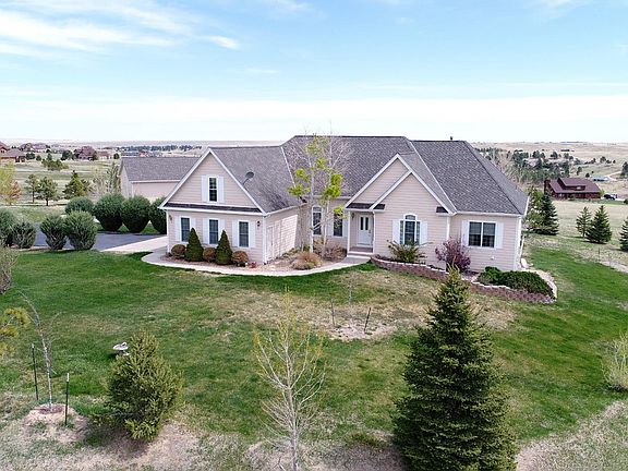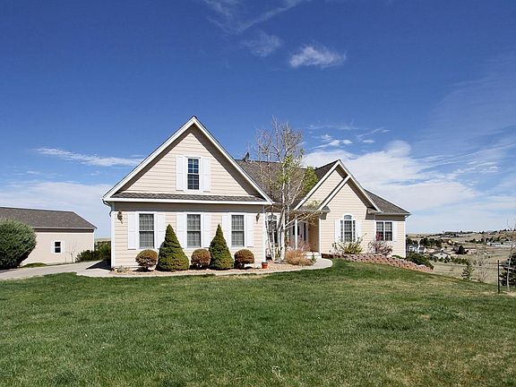 Big, beautiful country ranch with its own hot tub room on the main level. Two kitchens, Two laundry rooms, Office ( 13 X 34) above the garage, formal dining and living rooms. Oversized 3 car attached garage, Full Mother-in-law suite in walkout basement. Large family/recreation/ media room in basement. Separate exercise/non-conforming 5th bedroom in basement. Two decks, covered stamped concrete patio on lower level, Professionally landscaped with lots of trees around the house, large natural area with wildlife visitors. Detached 8+ car (30 x 70) finished and heated garage with tall (16x12) RV access door, half bath and storage plus loft storage area and lots of cabinets. Paved driveway. Wonderful mountain and sunset views. Dedicated generator for power outages, Property close to Parker and Southlands Mall. World class Douglas County schools. Move-in and enjoy!