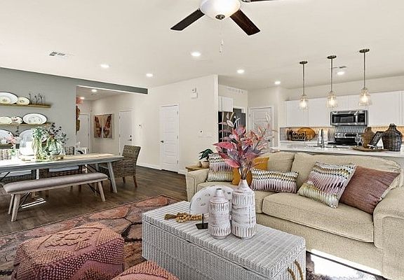 Mountain viewGolf course viewCovered patioOpen kitchenDining areaCorner lotWelcoming foyer
