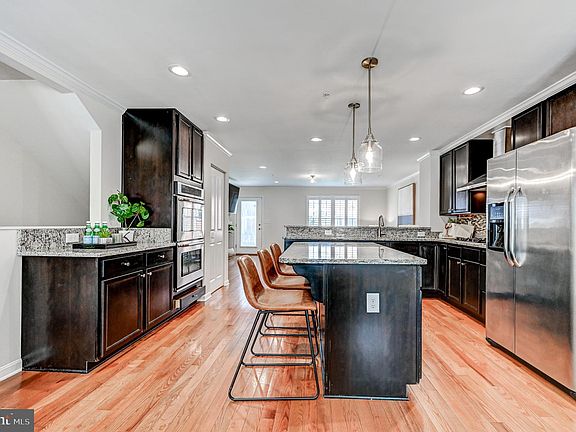 Welcome to your new home in vibrant Canton!  This expansive 4-story residence seamlessly blends modern design with everyday comfort, offering over 2,300 sq ft of thoughtfully crafted living space—one of the larger models in the community.  With 3 spacious bedrooms, each with its own en-suite bath, plus a convenient powder room, this home ensures both privacy and functionality.  The open-concept main level is perfect for entertaining, featuring a chef’s kitchen with granite countertops, stainless steel appliances, double ovens, and updated lighting.  The kitchen flows effortlessly into the dining and living areas, where you’ll find hardwood floors, abundant natural light, and a cozy gas fireplace—ideal for chilly evenings.  Step directly from the living room onto a deck, perfect for morning coffee or outdoor gatherings.  Retreat to the spa-inspired primary suite with a generous walk-in closet and a fully renovated bathroom, complete with a luxurious rain shower.  All bedrooms offer ample closet space, while the upper-level laundry room adds everyday convenience.  Step outside the living room onto a charming front patio with update flooring, perfect for morning coffee or head to the expansive rooftop deck with sweeping panoramic views—including the iconic Natty Boh sign. Additional upgrades include fresh paint (2025), new bedroom carpeting in every room (2025), newer toilets, plantation shutters, custom blinds, a mini-split system on the 4th floor and a built-in fire sprinkler system.  The 2-car garage provides effortless parking, and the location puts you just minutes from Canton’s best shopping, dining, and waterfront attractions. Don’t miss your chance to own this standout home that truly has it all!