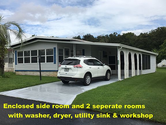 PRICE REDUCED FOR QUICK SALE $23999 IS A STEAL !!! WHETHER YOU’VE BEEN LOOKING FOR THAT RETIREMENT HOME WHERE YOU CAN SPEND YOUR RETIREMENT YEARS ENJOYING THE FLORIDA SUNSHINE, OR A GREAT INVESTMENT PROPERTY, THIS SPACIOUS 2 BEDROOM, 2 BATH HOME IS FOR YOU. LOW LOT RENT OF 567.00 A MONTH. EAT-IN KITCHEN: FULLY EQUIPPED KITCHEN WITH VINYL FLOORING. TABLE WITH 4 CHAIRS, REFRIGERATOR, MICROWAVE, STOVE/OVEN, TOASTER, COFFEE POT, DISHES, POTS AND PANS, SILVERWARE. LIGHTED CEILING FAN. LOTS OF CUPBOARDS AND STORAGE SPACE. LIVING ROOM: 1 SLEEPER SOFA, 2 RECLINER CHAIRS, 2 GLASS END TABLES WITH LAMPS, 1 ROCKING CHAIR WITH SIDE TABLE AND A STANDING LAMP, ENTERTAINMENT CENTER AND FLAT SCREENED TV. LIGHTED CEILING FAN. WOOD LAMINATE FLOORING. FLORIDA ROOM: ENCLOSED FLORIDA ROOM WITH LOTS OF WINDOWS GREAT FOR THOSE RELAXING MORNINGS WITH YOU CUP OF COFFEE. IT HAS CENTRAL AIR CONDITIONING AND HEAT. GLASS TOP DINING TABLE WITH 4 CHAIRS, SOFA AND TV. LIGHTED CEILING FAN AND BURBER CARPET. GUEST BEDROOM: QUEEN BED, 2 NIGHT STANDS, 2 LAMPS LARGE CLOSET. AND ADDITIONAL CABINET WITH SHELVES LIGHTED CEILING FAN. CARPETED. GUEST BATHROOM: DOUBLE SINK VANITY WITH LOTS OF STORAGE, LARGE SHOWER, WITH VINYL FLOORING. MASTER BEDROOM AND BATHROOM: KING BED, 2 NIGHT STANDS, 2 LAMPS, 6 DRAWER DRESSER, DESK AND CHAIR, 2 LARGE MIRRORED DOUBLE CLOSETS WITH ADDITIONAL DRESSER IN BETWEEN. LIGHTED CEILING FAN AND WOOD LAMINATE FLOORS. SEPARATE SINK AREA WITH LARGE WALK IN CLOSET AND LINEN CLOSET. LARGE TOILET AREA WITH ROOMY STAND UP SHOWER AND 2ND LINEN CLOSET. VINYL FLOORING. ENCLOSED OUTDOOR ROOM: THIS LARGE ROOM HAS VINYL WINDOWS, LIGHTED CEILING FAN WITH LARGE OUTDOOR TABLE AND CHAIRS. SEPARATE ROOM WITH WASHER, DRYER AND UTLITY SINK. ANOTHER SEPARATE ROOM WITH WORKBENCH. AC IS 2 YEARS OLD. NEWER ROOF. THIS HOME IS A MUST SEE! IT IS VERY SPACIOUS, NEAT, CLEAN AND IS FULLY FURNISHED AND READY TO MOVE IN. FRIENDLY AND ACTIVE COMMUNITY WITH SOMETHING ALWAYS GOING ON. LARGE CLUBHOUSE WITH BANQUET ROOM, POOL TABLES, GAME TABLES AND LIBRARY. ADDITIONAL AMENITIES INCLUDE A HEATED POOL, STATE OF THE ART GYM, AND SHUFFLEBOARD COURTS. THIS 55+ PARK IS CLOSE TO TOWN, GROCERY STORES, CHURCHES, HOSPITAL, BEACH’S, ZOO, THE PARKS AND GARDENS. 20 MINUTES TO TAMPA AND THE AIRPORT. ACTIVE AND FRIENDLY PARK WHERE YOUR PETS IS WELCOME. LOT RENT INCLUDES ALL CLUB AMENITIES, TRASH, WATER AND SEWER. $23999 or BEST OFFER!! CASH ONLY... CALL JOSEPH AND TERRY TODAY FOR MORE INFORMATION OR TO MAKE AN APPOINTMENT. 813-748-0111 PRINCIPALS ONLY, NO BROKERS PLEASE.