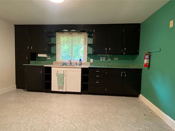 Make this cute single story building a home with just a few changes. This property offers a large yard, wooded lot, circular driveway and parking area. Inside there is a possibility of 3 bedrooms or 2 bedrooms with an office and one bathroom all in an open concept floor plan. Beautiful hardwood floors, 200 amp electric service natural gas, and public water.
