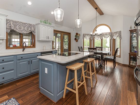 - Included: Electric Cooktop, Dishwasher, Disposal, Gas Water Heater, Kitchen Exhaust, Microwave, Double Oven, Refrigerator, Water Softener Owned