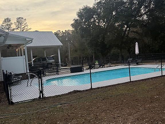 Peaceful Country home with 5.39 acres, pool, pond, and utility shed.