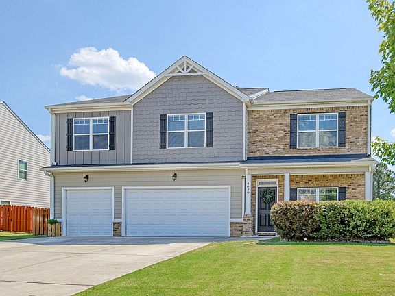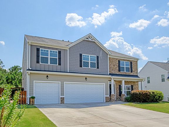 This 5 Bedroom, 3522 Square Feet home has a Guest Bedroom with private bath on the main level with Dining Room/Living Room combination and a Family Room with Gas Fireplace. Open floor plan with eat in kitchen, island, granite countertops and stainless appliances and tiled backsplash. Gas Cooktop. Upstairs is a HUGE main bedroom with private ensuite with garden tub and shower. An additional bedroom has its own private bath. Two additional bedrooms share a hall bathroom. Yes that is 4.5 Bathrooms. And the media room is also on this level perfect for pool table or other gathering space. There is a three-car garage with plenty of room for your cars and golf cart, if that is your preference. Covered front and back porches. Fire pit. Neighborhood has a playground and community pool. 10 minutes to everything in Evans like the movie theater, Evans Town Center Park, Columbia County Performing Arts Center etc. 20 minutes to Fort Eisenhower or downtown Augusta. Dog friendly with owner approval and non-refundable pet fee. Questions?