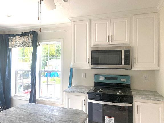 This brand new ranch home features new stainless appliances, sheetrock walls and ceilings. Neutral flooring and painted walls. Central Air, ceiling fan in bedroom and kitchen. Storm doors, crown molding. Dishwasher, gas range, microwave, refrigerator 12x16 deck and shed included. Upper cabinets in laundry, extra storage cabinets in baths, linen closet and entry closet. Neutral colors .