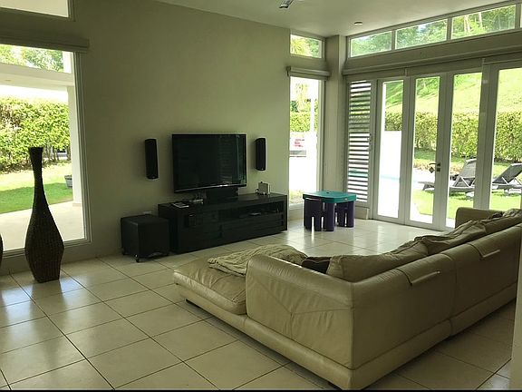 Beautiful one story, cul-de-sac property located at Gurabo, Puerto Rico in a secure gated community with resort-style amenities including a swimming pool, tennis and pickleball courts, roofed basketball court, jogging trail, fitness center, entertainment room and playground for kids and much more. This home has an open space concept design with 4 spacious bedrooms, 3.5 bathrooms, living room, dining room, family area with glass doors and windows overlooking the pool and backyard, remodeled kitchen with pvc cabinets and quartz countertops, a large laundry room and a lot of storage. Also a closed garage area with space for two vehicles as well as a large storage room which can be converted to an office space. You can also enjoy a beautiful backyard with your own swimming pool with a gazebo and a covered terrace with a bar. Additional features include security windows and doors, mini-splits air conditioning units, kitchen appliances, washer and dryer, transfer switch to connect a generator and a water cistern. Easy access to highways to major city destinations and more. HOA $120 per month.