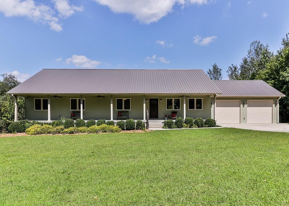 LIVE IN A PARK SETTING & BOAT FROM PRIVATE PROTECTED DOCK on Outlot - D (on White Oak). Beautiful natural surroundings on TIMS FORD, just a few minutes walk to water. Open plan living with hardwood floors. Septic is 3 beds with a 4th room that could be a bed or flex room - 3 baths. 60' covered porch on front & back to relax and enjoy the county.
