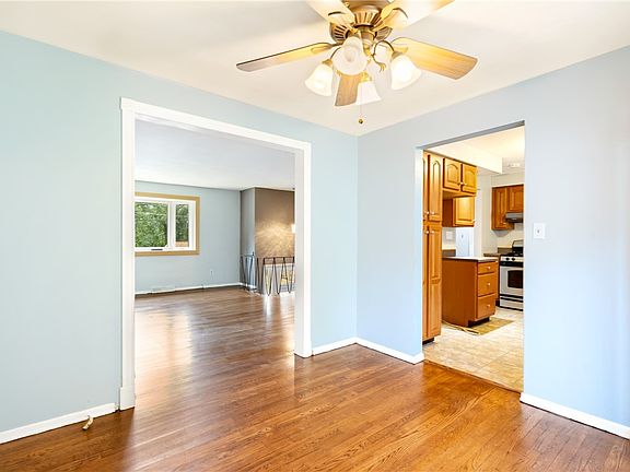 Newly painted property with sparkling newly refinished hardwood floors...three ceiling fans, gas stove and cooktop, disposal, dishwasher, microwave, brand new refrigerator, newer washer and dryer, screens, and multi-pane windows. The dining room opens with a sliding glass door to a lovely wooden deck which leads to a very large fenced-in yard with lovely plantings. Above the deck is a Sun Setter awning. The basement has been updated for a game room, with new walls & carpeting, including the Pittsburgh toilet & sink.