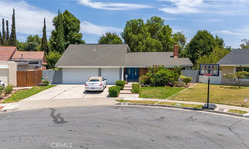 Welcome to this beautifully maintained 5-bedroom with bonus room, 2.5-bathroom home, perfect for growing families or those who love to entertain. Nestled in a serene neighborhood on a private cul-de-sac, this property offers a blend of classic charm and modern convenience such as newer dual zone central AC and paid off solar panels. As you enter, you'll be greeted by a spacious living room with vaulted ceilings and large windows that bathe the space in natural light. The spacious kitchen is a chef's dream, featuring stainless steel appliances, granite countertops, and ample storage. Adjacent to the kitchen is a cozy dining area, perfect for family meals and gatherings, and a bonus room that can be easily converted into an office. Downstairs there are 2 bedrooms including the master suite. The master suite offers a private retreat with an en-suite bathroom. The additional five bedrooms are generously sized, offering flexibility for guest rooms, home offices, or playrooms. The home also boasts an extra large backyard with soaring trees and tons of privacy, a patio and storage shed, ideal for outdoor entertaining, gardening, or simply enjoying the fresh air. With its convenient location close to schools, shopping, parks, Imperial Hwy and the 57 freeway, this home is an incredible opportunity to enjoy comfortable and stylish living. HOA fees are extremely low and offers a junior-olympic sized pool, kiddie pool, clubhouse with full kitchen, bbq area, and basketball court.