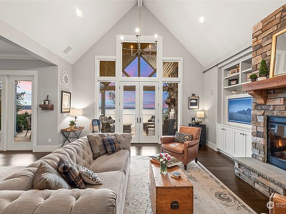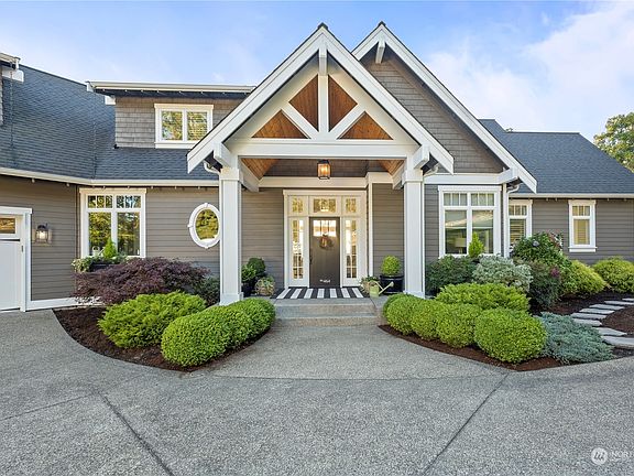 190' of southwestern high bank views - this home is in a one-of-a-kind Fox Island community and awaits you. Set on 3.88-acre property offers lush greenery, privacy, and tranquility, providing stunning views from sunrise to sunset. The dream home you've been searching for features 3,036 square feet of living space with an open and airy concept layout, perfect for comfortable main floor living. An abundance of cabinetry and architectural detailing throughout. Built in 2014, this custom-designed home looks and feels new having been tenderly and meticulously cared for. Welcome home through your private gate overlooking the Carr Inlet, the home and charming barn styled outbuilding with large fenced garden area and views provide and estate feel.