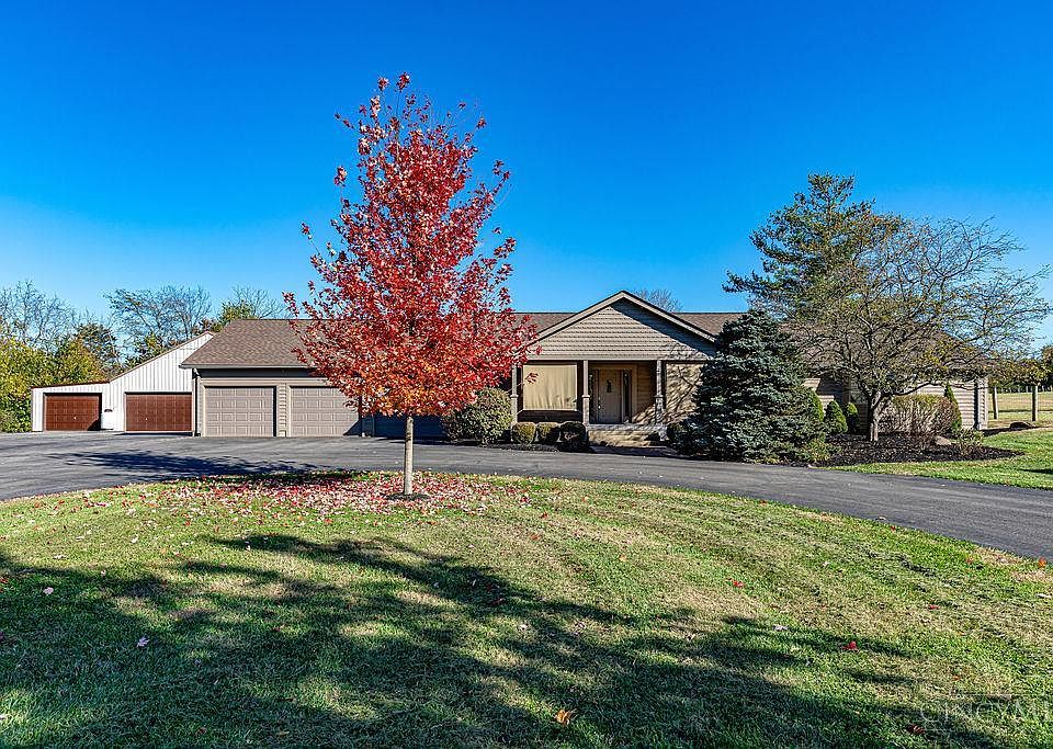 Seller custom built the home with attention to detail. This is a 3-bedroom, 2.5-bath retreat nestled on a private, beautifully landscaped lot on a dead-end road. Thoughtful exterior can lighting along entire perimeter of home, providing premium lighting year-round. Enjoy fishing in the stocked pond, or take in the peaceful views from the covered deck, or relax on the back patio with optimal lighting for evening gatherings. Inside, the spacious family room features vaulted ceilings, large windows showcasing the serene outdoor scenery, and cozy stoves that keep the home toasty all winter long. The property offers an oversized 3-car attached garage plus a 3-car detached garage perfect for storage, hobbies, or extra vehicles. All appliances stay! Water heater (5-6 yrs), roof/gutters (4 yrs), and HVAC (7-8 yrs) provides peace of mind. A rare combination of comfort, space, and privacy don't miss it!