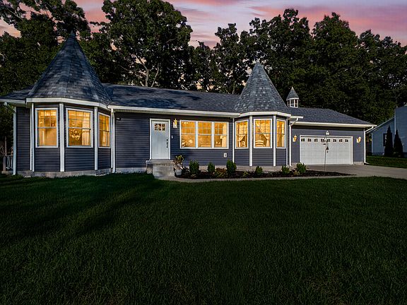 Experience the perfect blend of craftsmanship and comfort in this 5-bedroom, 2.5-bath custom home, ideally situated on a spacious lot just steps from Wolf Lake. Enjoy breathtaking sunsets and gentle summer breezes from your hilltop front yard, surrounded by a serene, wooded setting.