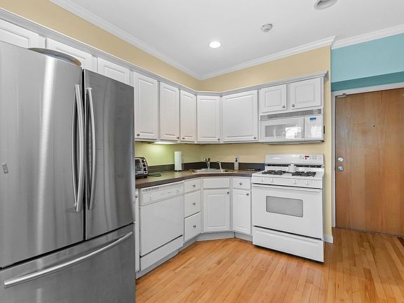 On the Waterfront side of Hanover Street, in Boston's most historic neighborhood, sits this beautiful two bedroom home. Southeast facing, corner unit, with view of the harbor, shines with continuous, natural sunlight. Spacious living/dining area, with wall of double windows, features maple hardwood floors, high ceilings and crown molding. The L-shaped kitchen, with Euro cabinets, gas for cooking, fully compliments the open concept floor plan. Primary bedroom, with corner exposure, offers generous closet space. Second south facing bedroom features an expansive walk in closet. Full tile bath, gas heat, central air. There is complimentary laundry on the floor in the common vestibule. New roof and spectacular roof deck coming soon! 464 Hanover Street is located steps from Boston Harbor, the Christopher Columbus Park, the Rose Kennedy Greenway and the Financial District as well as the restaurants, cafes and shopping of the North End, Faneuil Hall. and the Seaport locales. Pets are welcome.