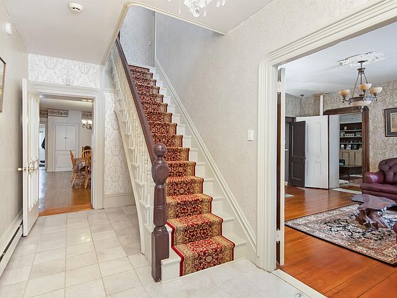 Built in 1818, this majestic estate sets an impressive standard with over two hundred years of rich history. If walls could talk, The Manor would tell a profound story. Aside from the lavish grounds, this massive home boasts more than 8000 sq ft ! Upon entering through the Foyer you will find both a parlor, with chestnut woodwork, and a living room both with original Mable Rumford fireplaces, to each side. Passing through the parlor is the library with separate entrance, ideal for an in-home business. A newly remodeled kitchen offers custom cabinetry, soapstone counters, built-in wine rack, commercial stove, a walk-in pantry with French door and large island ideal for gatherings. A formal dining room, 3 season room, laundry room and multiple bathrooms unfold as you make your way through the main floor. A veranda, 5+ bedrooms and 3 baths complete the 2nd level and an additional 2 bedrooms and bath on the 3rd floor. With nine and ten foot ceilings throughout this three-story home you get the sense that every room is a grand gesture. The alluring Ballroom presents endless possibilities with a vaulted and beam ceiling, chandelier, custom bar, stage, updated bathrooms and commercial kitchen. The clearly meticulous construction includes grand pillars in the front entrance, as well as a balcony overlooking the glorious 5.7-acre property. Come and step inside this fairytale property and let your dreams unfold…. (see attached for history and full upgrades list)
