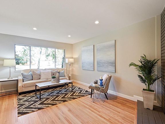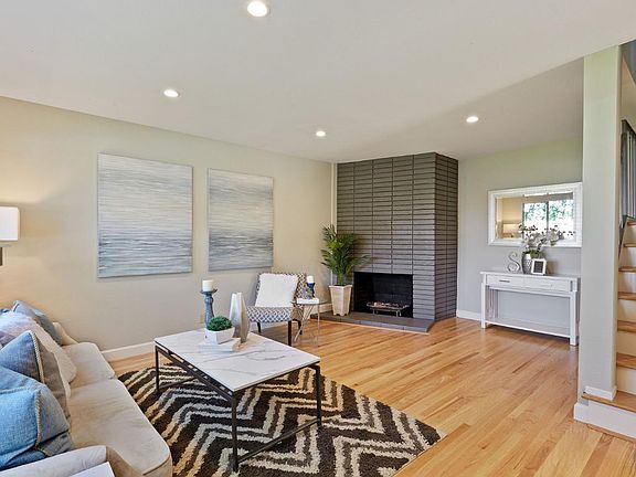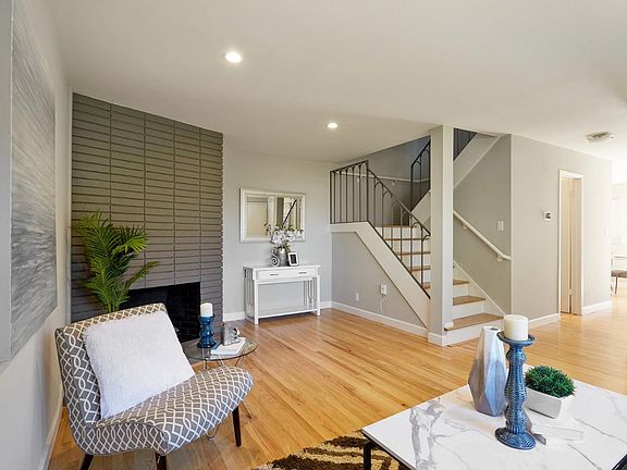 Beautifully-updated and conveniently located, this 3 BR, 2.5 BA, end-unit townhouse lives like a single-family home. The main level offers a large living room with wood-burning fireplace, an updated kitchen with new stainless steel appliances, a separate dining area and a large walk-out patio. Upstairs you'll find a spacious master suite, two newly-updated bathrooms and two additional generously-sized bedrooms. Adjacent to an expansive, green, open-space that lends a sense of privacy that new-construction townhomes don't! Fresh paint, newly-refinished hardwood floors, attached 2-car garage, in-unit laundry and much more! All in an outstanding Mountain View location, close to hi-tech campuses, downtown Mountain View, and major commute routes (Caltrain, Hwy 101, Hwy 85 and Stevens Creek trail) and within a community offering a shared pool, playground and clubhouse!