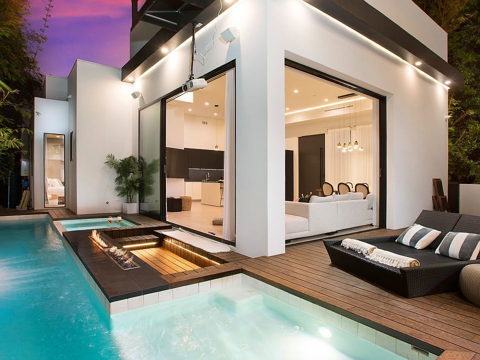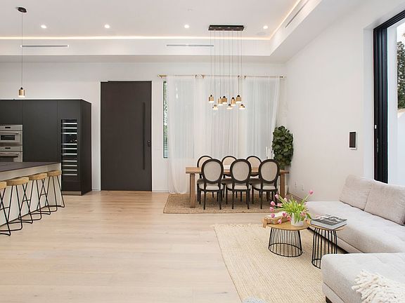 A West Hollywood masterpiece, The Tulum House offers spectacular views, fresh contemporary design, and elevated architecture. With 4 en-suits bedrooms plus a Cabana/gym, 5.5 bathrooms, and 3,400 SF of polished living space, enjoy the space to live a life of leisure and ease. An open floor plan, pristine white paint, Italian Venetian plaster design throughout, wood floors, and brass elements curate a sophisticated oasis. The great room includes an elegant European kitchen by "Bauformat" with an island and bar seating, Italian Dekton counters, dark cabinetry, and top of the line appliances. Connected is a dining and living area. Glass doors open to the enchanting outdoor area with a pool, spa, waterfall, fire features, and an outdoor cinema. A magical rooftop includes a deck, bar area, outdoor kitchen, theater, and swing seatingtruly a special place for entertaining. Enjoy a gym, two-story guest home, expansive primary suite with private yard and fire-pit, and a spa-like bathroom with a marble steam shower.