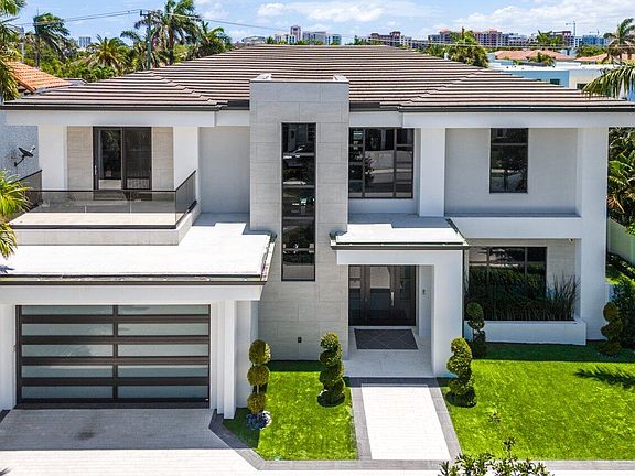 This stunning and light filled artfully designed residence is located in Boca Raton's hottest community, Boca Villas! Walking distance to Mizner Park's world class fine dinning and shopping and close to the famous Boca Raton Hotel and club, and the blue Atlantic ocean. The two story foyer introduces the amazingly beautiful open floor plan. The large modern kitchen, with views of the private back yard, gorgeous pool area with artificial turf and covered summer kitchen, features Sub Zero and Wolf appliances, butlers pantry and large center island and is open to the spacious comfortable and inviting family room. A formal dinning room, large well appointed VIP guest suite, full cabana bath and secondary laundry complete the first floor. A beautiful Ash wood staircase with glass banisters leads to the 2nd floor with large open loft and beautiful hardwood oak floors throughout. The primary bedroom suite with two large walk-in closets, features large glass siders which open to a 25 ft covered balcony finished in brushed shell reef stone, tinted glass banisters and a view of the beautiful pool area and back yard with its artificial turf. The primary bath features a Kohler intelligent toilet, a glass enclosed shower with three shower heads and a beautiful free standing soaking tub. Three additional en suite bedrooms and a large laundry complete the second floor.